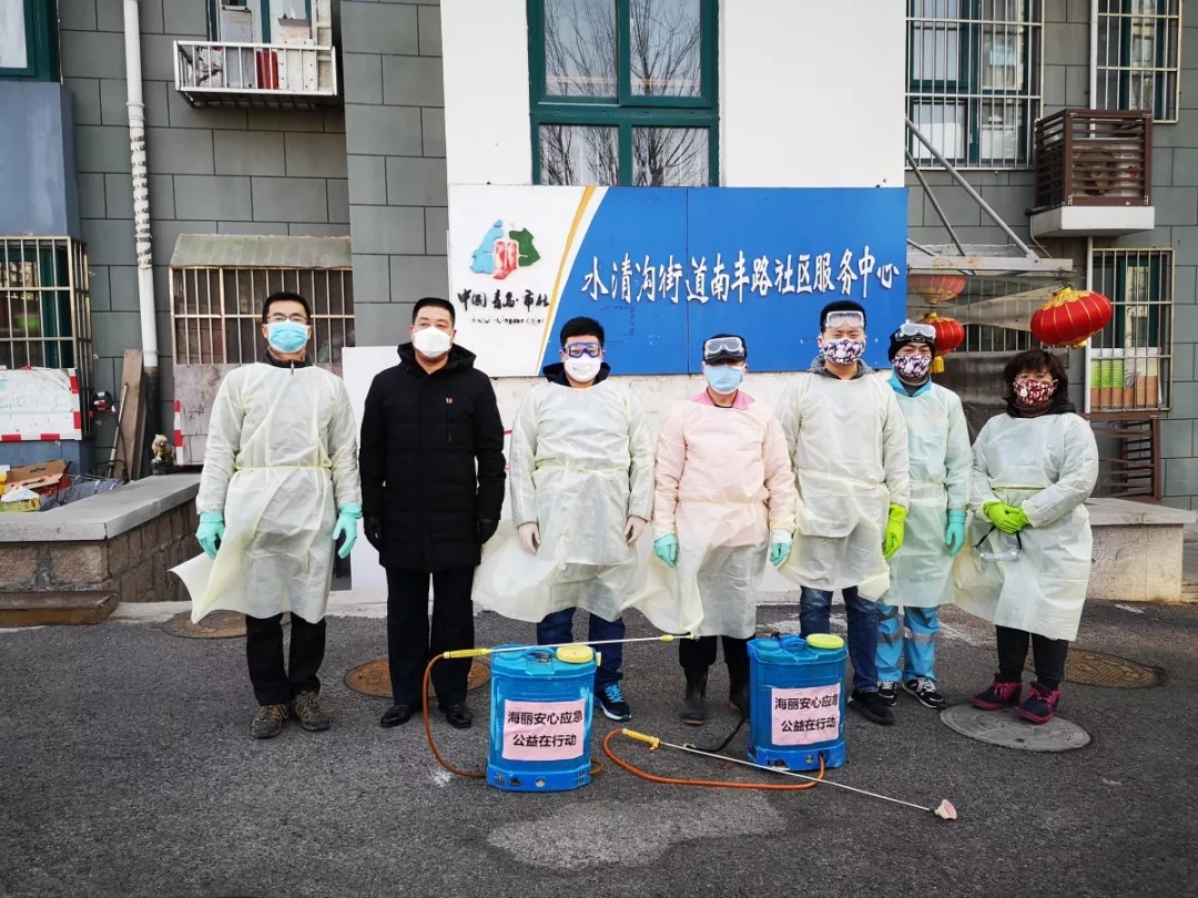 國(guó)有難,召必回,回必戰(zhàn)。在大家的積極響應(yīng)下,當(dāng)天成立了由鄭文嬌、王琳、劉曉龍、曲風(fēng)文、孫世福、宋夢(mèng)茹、劉栩江、徐繼華、劉剛、孫睿、王帥、韓慶偉、劉建光、遲延平、唐翠麗、王雨辰、徐連龍等17人組成的海麗安心防疫志愿隊(duì),為市北區(qū)的街道社區(qū)進(jìn)行義務(wù)消殺。這些同事接到任務(wù)后,有從外地老家匆忙趕回來(lái)的,有到處借消殺用具的,有搜集護(hù)具用品的,有全程參與消殺工作的,有身兼數(shù)職的,唯獨(dú)沒(méi)有任何怨言。