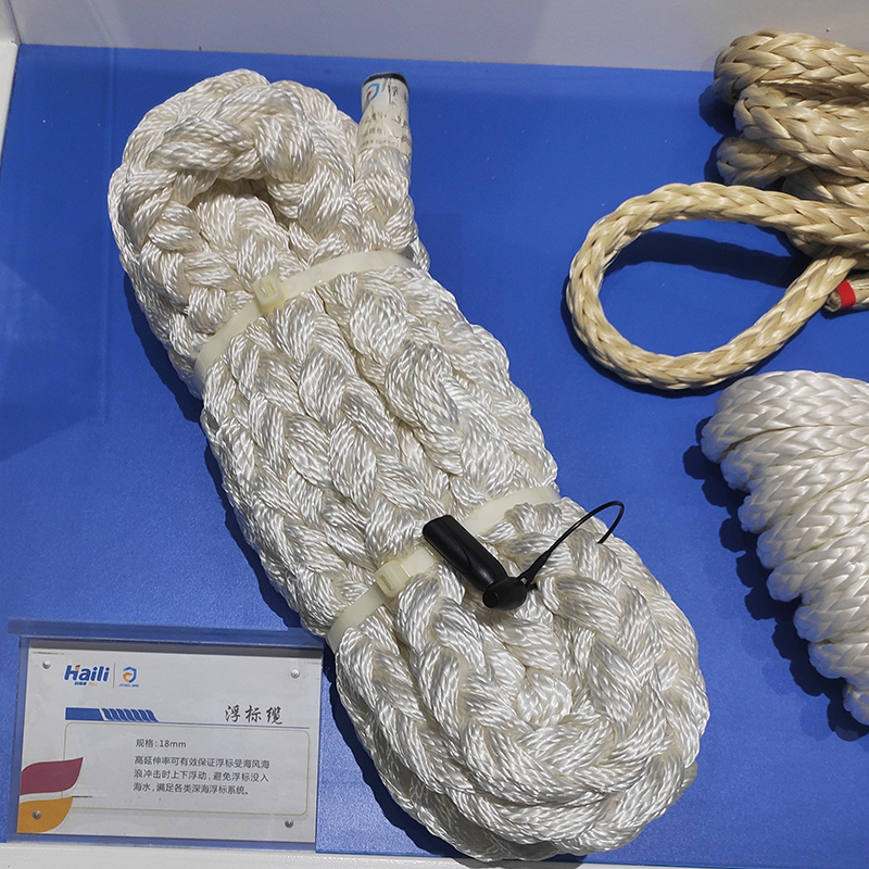 采用優(yōu)質(zhì)高強(qiáng)尼龍纖維,可定制直徑15mm~60mm浮標(biāo)專用繩纜,經(jīng)過(guò)特殊后整理工藝,斷裂強(qiáng)力50kN~600kN,延伸率20%~45%,高延伸率可有效保證浮標(biāo)受海風(fēng)海浪沖擊時(shí)上下浮動(dòng),避免浮標(biāo)沒(méi)入海水,這款浮標(biāo)纜繩滿足各類深海浮標(biāo)系統(tǒng)。