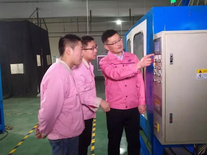 大國(guó)工匠徐連龍(右二)填補(bǔ)國(guó)內(nèi)制繩領(lǐng)域多項(xiàng)空白。