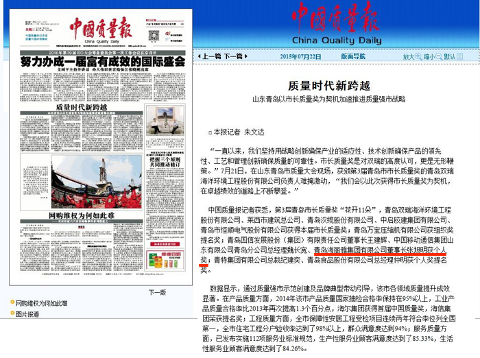 海麗雅集團(tuán)在董事長(zhǎng)張旭明的帶領(lǐng)下,積極貫徹卓越績(jī)效管理體系,在提升自身企業(yè)質(zhì)量管理水平的同時(shí),將真正為青島市的質(zhì)量強(qiáng)區(qū)、質(zhì)量強(qiáng)市工作貢獻(xiàn)力量。