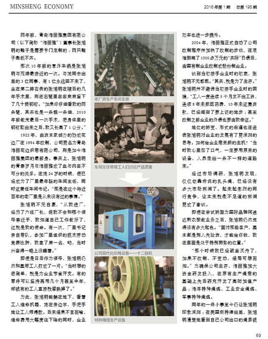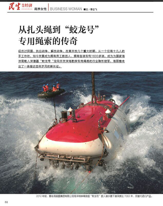 青島海麗雅集團(tuán)94年專注一根繩子,在傳統(tǒng)與創(chuàng)新之間尋求突破,不斷為繩纜注入科技力量。公司完成了從純手工生產(chǎn)扎頭繩到為國(guó)家海洋科考船“大洋一號(hào)”、載人潛水器“蛟龍?zhí)枴钡燃舛祟I(lǐng)域研發(fā)、配備高科技特種繩纜,再到應(yīng)急自救產(chǎn)業(yè)的進(jìn)化,實(shí)現(xiàn)了從“中國(guó)制造”到“中國(guó)質(zhì)造”。