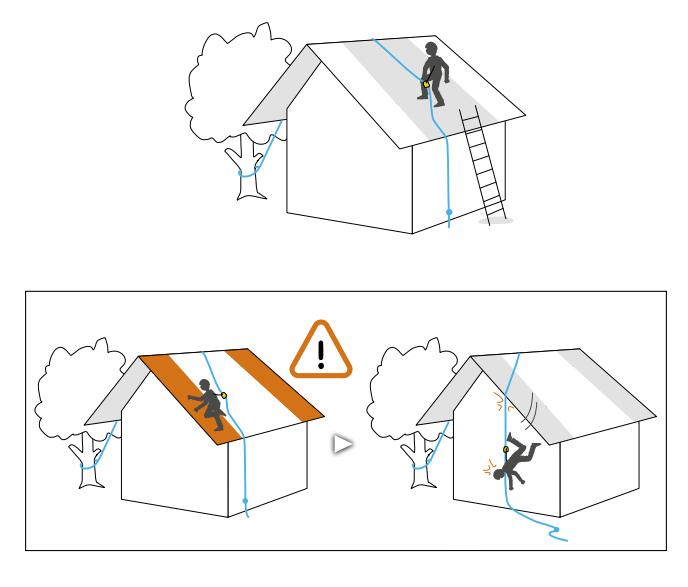 在這種環(huán)境下使用安全繩進(jìn)行工作,滑倒和墜落的風(fēng)險(xiǎn)較高。必須安裝一個(gè)安全裝置以預(yù)防這些危險(xiǎn)。