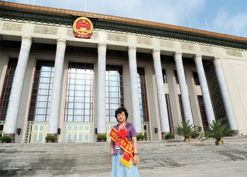 青島海麗雅集團(tuán)董事長張旭明參加“全國紡織工業(yè)先進(jìn)集體、勞動模范和先進(jìn)工作者”表彰大會,在人民大會堂前留念。