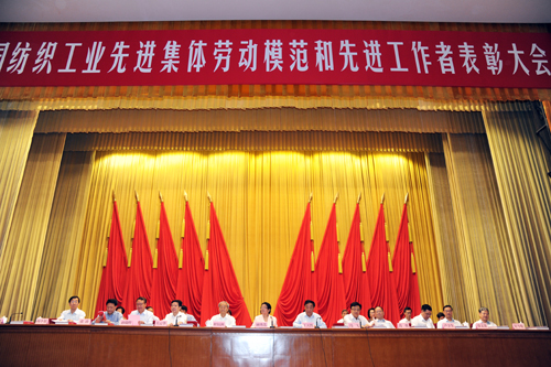 第十屆全國人大常委會副委員長顧秀蓮,工業(yè)和信息化部副部長馮飛,國家公務(wù)員局黨組成員、副局長吳云華,人力資源社會保障部國家表彰獎勵辦公室主任、國家公務(wù)員局考核獎勵司司長薛紅,國資委行業(yè)協(xié)會聯(lián)系辦公室副主任張濤,中國紡織工業(yè)聯(lián)合會會長王天凱等領(lǐng)導(dǎo)出席了表彰大會。同時,來自中國紡織工業(yè)聯(lián)合會各成員單位的領(lǐng)導(dǎo)以及各省、市自治區(qū)紡織勞模評選表彰辦公室、省市行辦(協(xié)會)的領(lǐng)導(dǎo)以及紡織服裝企業(yè)負(fù)責(zé)人、新聞媒體代表等共計800多人參加了人民大會堂的表彰活動。中國紡織工業(yè)聯(lián)合會副會長楊紀(jì)朝主持大會。