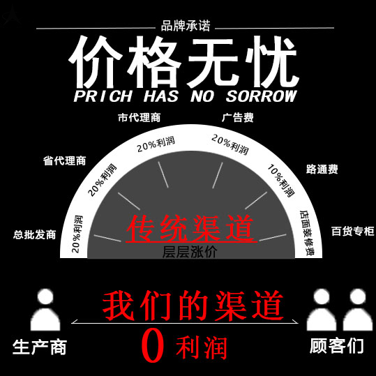 傳統(tǒng)渠道:總批發(fā)商——省級代理商——市級代理商——廣告費(fèi)——路通費(fèi)——店面裝修費(fèi)。