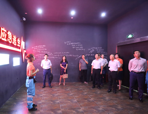 陳黎明秘書(shū)(左二)一行考察“地鐵應(yīng)急逃生”項(xiàng)目
