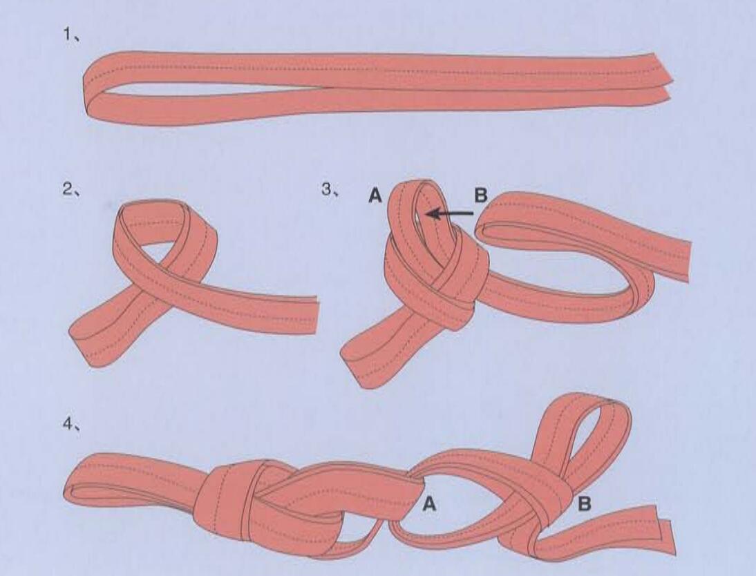 由于最開(kāi)始距織帶中心的長(zhǎng)度被抵消了一部分,織帶兩端應(yīng)該剛好能在您臀部的一側(cè)會(huì)合。用平結(jié)(square knot)將織帶的兩端系在一起,以便安全吊帶盡可能的繃