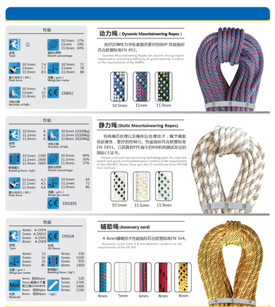 4-8mm輔助繩技術(shù)性能指標(biāo)符合歐盟標(biāo)準(zhǔn)EN 564。