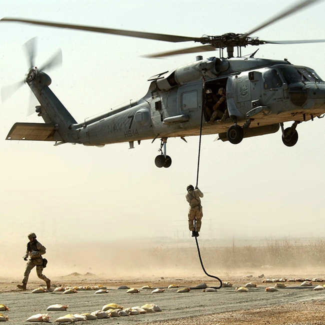 飛機繩-飛機上逃離繩是專門為從直升機上快速下降而開發(fā)的,無需借助下降器,只需手套的摩擦。它柔軟而靈活的結(jié)構(gòu)促進了舒適而精確的下降。