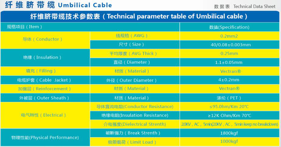 “蛟龍”臍帶纜技術(shù)指標(biāo):