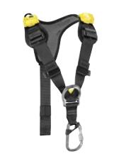 胸式安全帶與坐式安全帶組合在一起成為防墜落安全帶。泡棉肩帶肩距較寬,可防止頸部擦傷。如果腰帶承重,重量會(huì)被分散到肩帶上。肩帶上帶有一個(gè)可鉤掛止墜挽索連接鎖扣的掛點(diǎn),方便取用鎖扣。消防救援裝備整體解決方案。